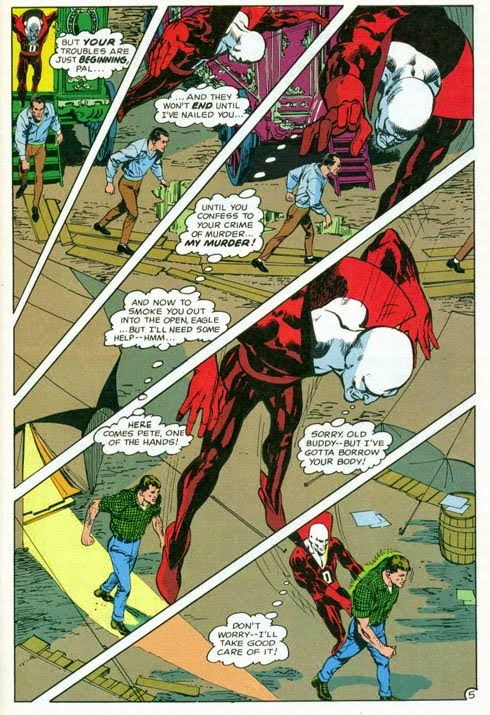 - Asesinado antes de que llegara su hora y habiéndosele concedido la extraña habilidad de poseer los cuerpos de los vivos, el espíritu del acróbata de circo Boston Brand continúa viviendo para mantener el equilibrio entre el bien y el mal como... Deadman. ¡CAMPO DE BATALLA URBANO!